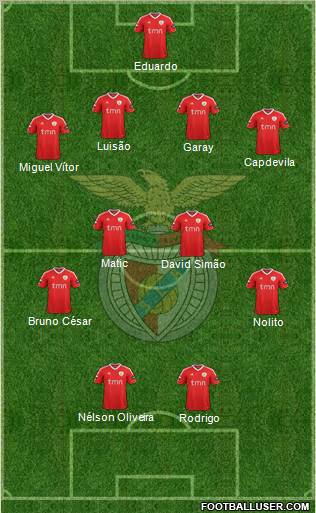 Artur cedeu o seu lugar a Eduardo, Miguel Vítor e Capdevilla ocupam as laterais normalmente frequentadas por Maxi Pereira e Emerson, Matic e David Simão surgem no meio-campo onde costuma actuar Javi Garcia e Witsel, Bruno César e Nolito jogam em simultâneo em vez de Gaitán e um deles como geralmente acontece, e na frente de ataque, nem Aimar como “10” nem Cardozo como “9” nem Saviola, mas sim Rodrigo e Nélson Oliveira a formarem a dupla de pontas-de-lança.